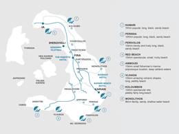 Sculpted by nature, this pebble beach is famous for the unique shapes of the surrounding rock formations